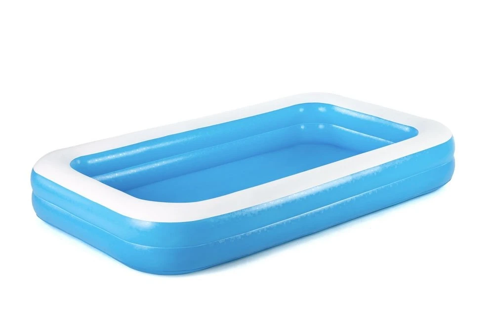 2 Rings rechthoekig opblaasbaar zwembad. Sterke I-beam constructie en extra brede wanden. Incl. aftapplug en reparatie patch. Watercapaciteit: 850 ltr. Van 0,32 mm vinyl. Leeftijd: 6+. Afmeting: 305x183x46 cm.