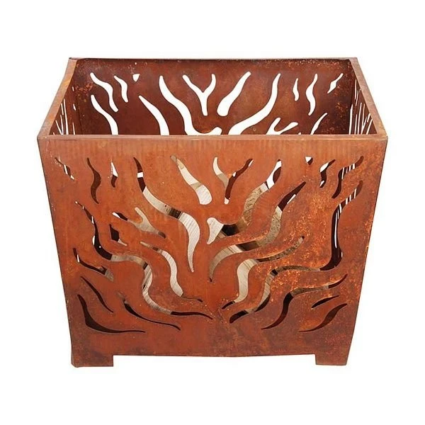 Vuurkorf vierkant roest M. Deze vuurkorf is voorzien van laser uitgesneden figuren die zorgen voor een betoverend vuur en avonden.