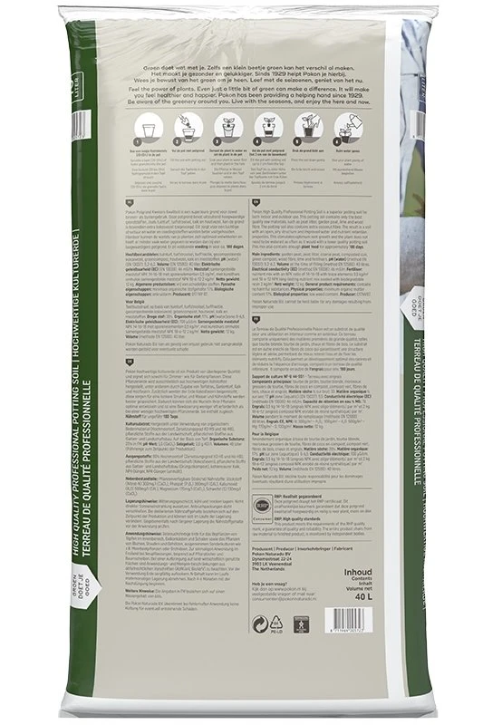Pokon Potgrond Kwekers Kwaliteit is een superieure grond voor zowel binnen- als buitengebruik. Deze potgrond bevat uitsluitend hoogwaardige grondstoffen, zoals tuinturf, turfstrooisel, kalk en houtvezel. Aan de grond is bovendien extra kokosvezel toegevoegd. Dit zorgt voor een luchtige structuur en water en voedingstoffen worden beter vastgehouden. Hierdoor kunnen de wortels van je planten zich optimaal ontwikkelen en hoeft er minder vaak water gegeven te worden dan bij een laagwaardige potgrond. Er zit voldoende voeding in voor ca. 180 dagen.
