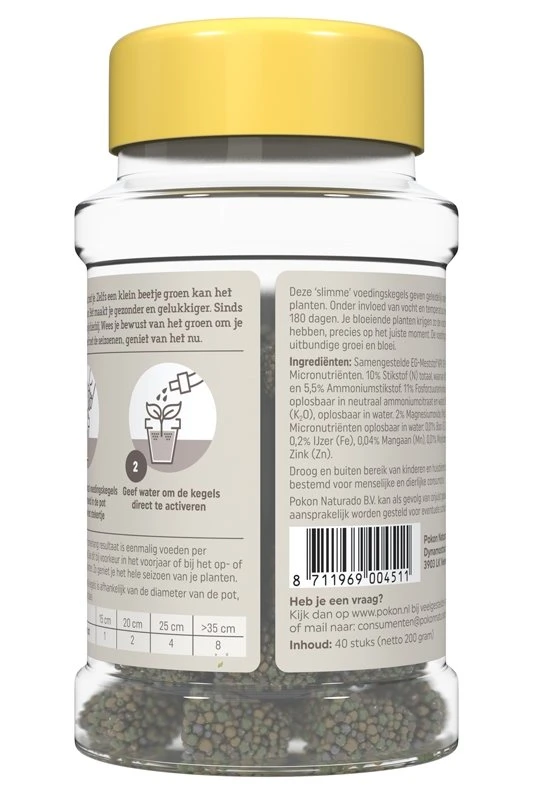Met de Pokon Terras & Balkon Planten Voedingskegels geef je jouw planten een heel seizoen voeding. Duw de voedingskegels naast de plant en geef water. Doe dit bij voorkeur in het voorjaar of bij het op- of verpotten van je planten. Onder invloed van vocht en temperatuur geven de voedingskegels tot wel 180 dagen voeding af.