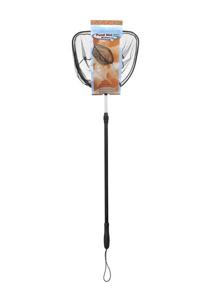 Multifunctionele vis- en vijvernetten. Met de telescopische steel kun je zelf de lengte van het schepnet bepalen.